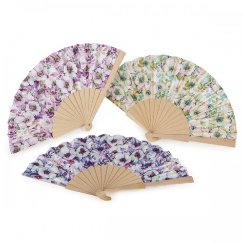 Abanico jardín de flores y se vende surtido. Medida abanico cerrado 23 cm, medida abierto 41,5 x 23 cm.