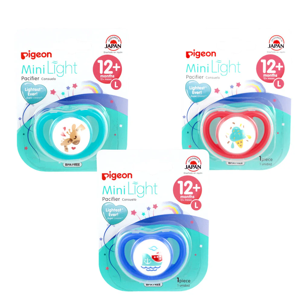 Los bebés tienen una necesidad natural de succionar. Los Chupetes Odontológico PIGEON Mini Light Talla L 12m+ satisfacen sus necesidades y calman sus emociones. Aparte de eso, los chupetes también ayudan a los bebés a aprender la respiración nasal. Los chupetes PIGEON están hechos de la clase más suave de silicona, con una forma que se adapta realmente a la boca del bebé.