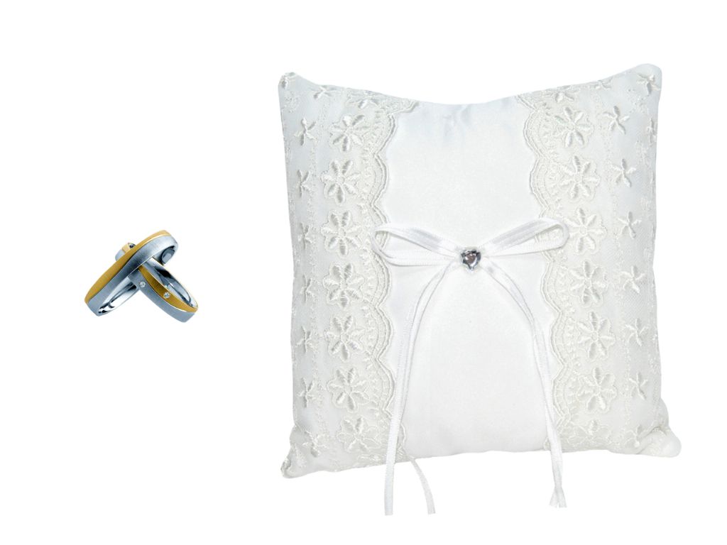 Cojín para anillos bordado de tela con brillante corazón – Ref. 8164 -CAR