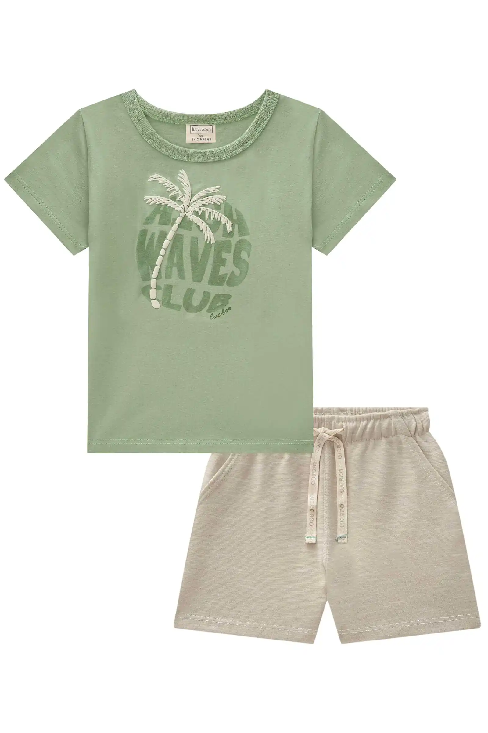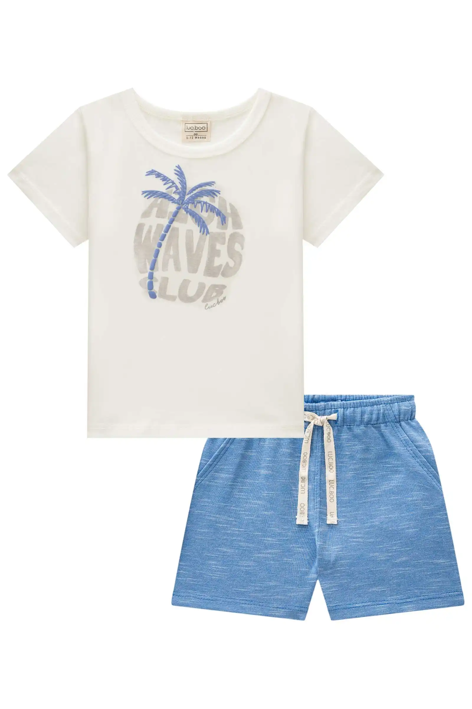 Descubre el Conjunto Baby Waves Club 2 Piezas, un outfit veraniego, cómodo y perfecto para los primeros paseos y aventuras de tu pequeño. Incluye polera de algodón suave con estampado palmera estilo resort y short liviano con cintura elástica para total libertad de movimiento.