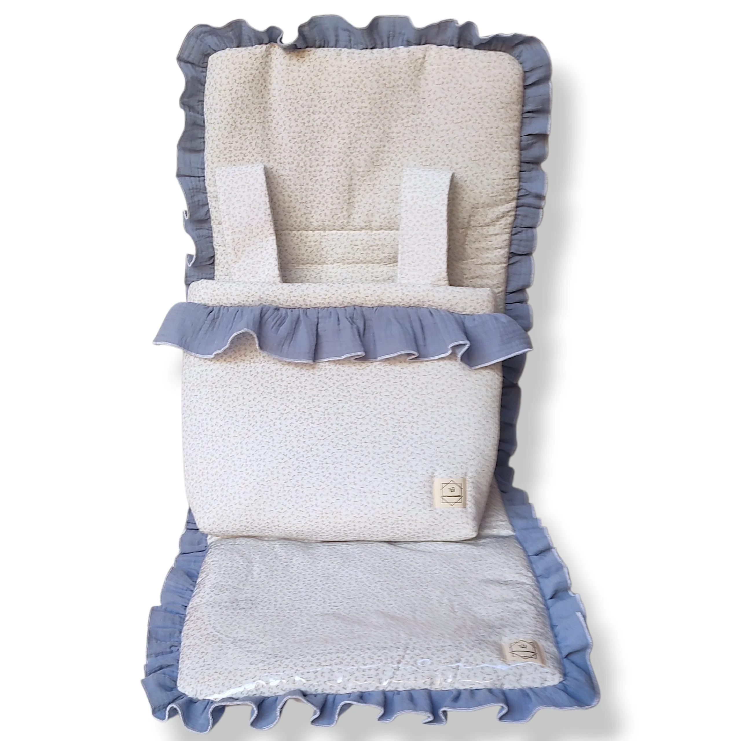 Completa el look de tu carrito con el conjunto de bolso + funda/colchoneta para la silla.