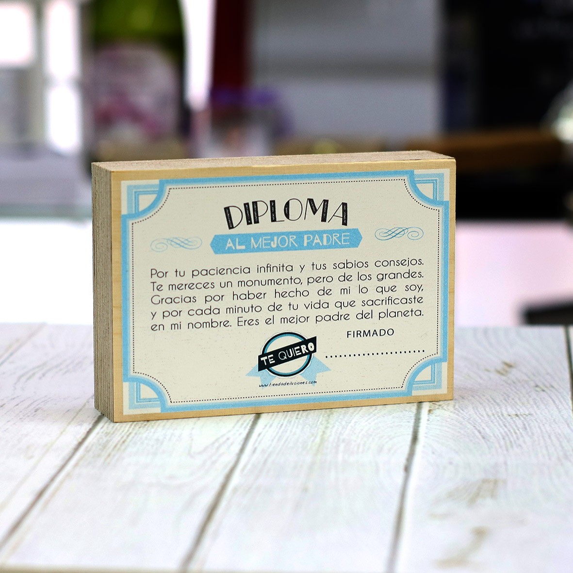 Taco de madera Diploma papá 9x13x3cm